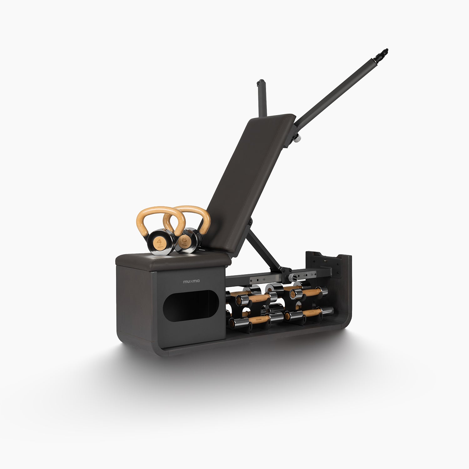 The muxma Free-fit bench is a multifunctional & space-saving bench, all-in-one workout station that seamlessly integrates into any home space.